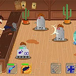 Greife zu deiner Pistole, dränge Wellen mechanischer Feinde zurück und teste deine Reflexe in mehreren Leveln, die immer schwerer und intensiver werden. Ziele schnell, schieße präzise und überlebe jeden Angriff, um Sterne zu verdienen und die bestmögliche Punktzahl zu erreichen. Kannst du jeden Roboter ausschalten und der härteste Revolverheld im Ödland werden?