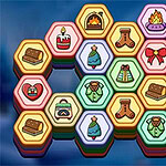 Räume das Spielfeld leer, indem du drei gleiche sechseckige Plättchen stapelst